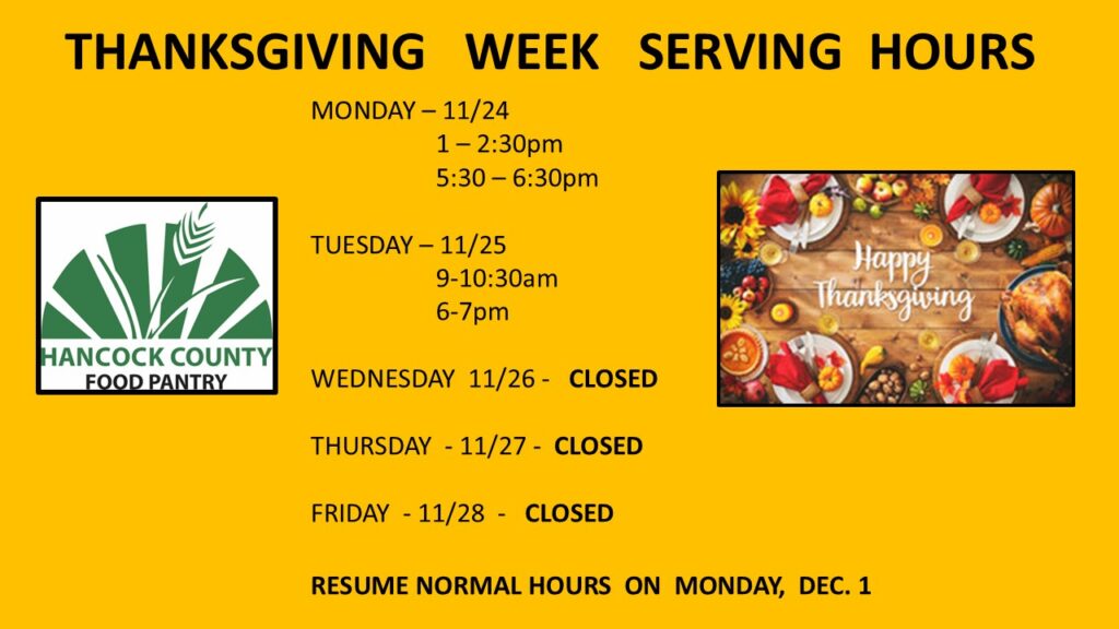 WORKING TO SECURE AND DISTRIBUTE FOOD TO ALLEVIATE HUNGER IN HANCOCK COUNTY AND BEYOND